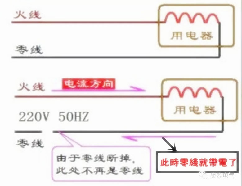 3.零線斷裂,電流未能形成回路,在斷裂處后面的電氣設(shè)備中有漏電或有較大的單相負(fù)荷運(yùn)行,使零線帶電。停電后測(cè)試零線是否斷裂,斷裂的進(jìn)行查找并修復(fù)。