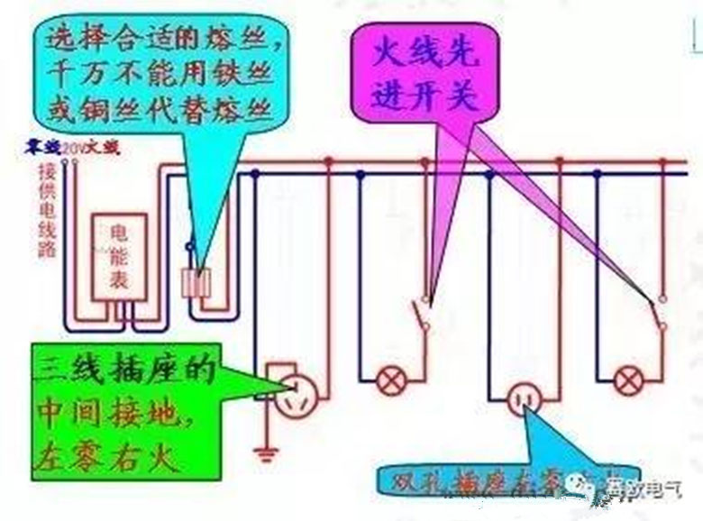 2、火線:是相對于零線來說的,通常家庭用電只是用三相電的其中一相,它的線電壓為220伏,它是通過零線構成回路使家用電器工作的;
