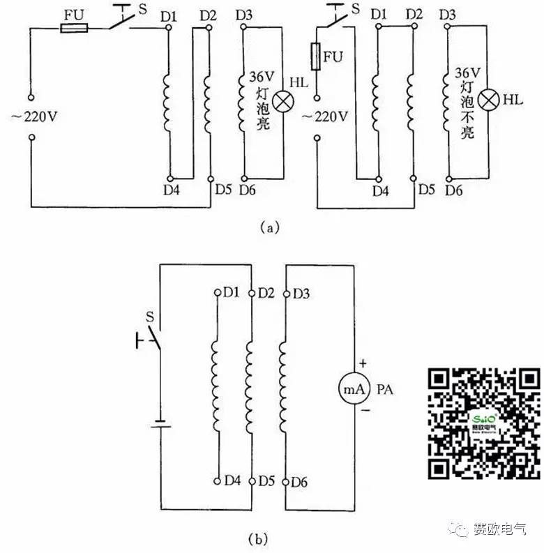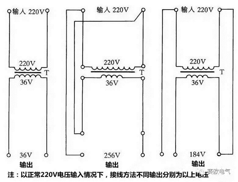 采用此法應注意兩點:一是在接線前必須把行燈變壓器次級一端與殼體的連接線拆除(也就是零線保護接地線須拆除);二是要注意行燈變壓器的初、次級繞組的電流都不能超過各自的額定電流值。